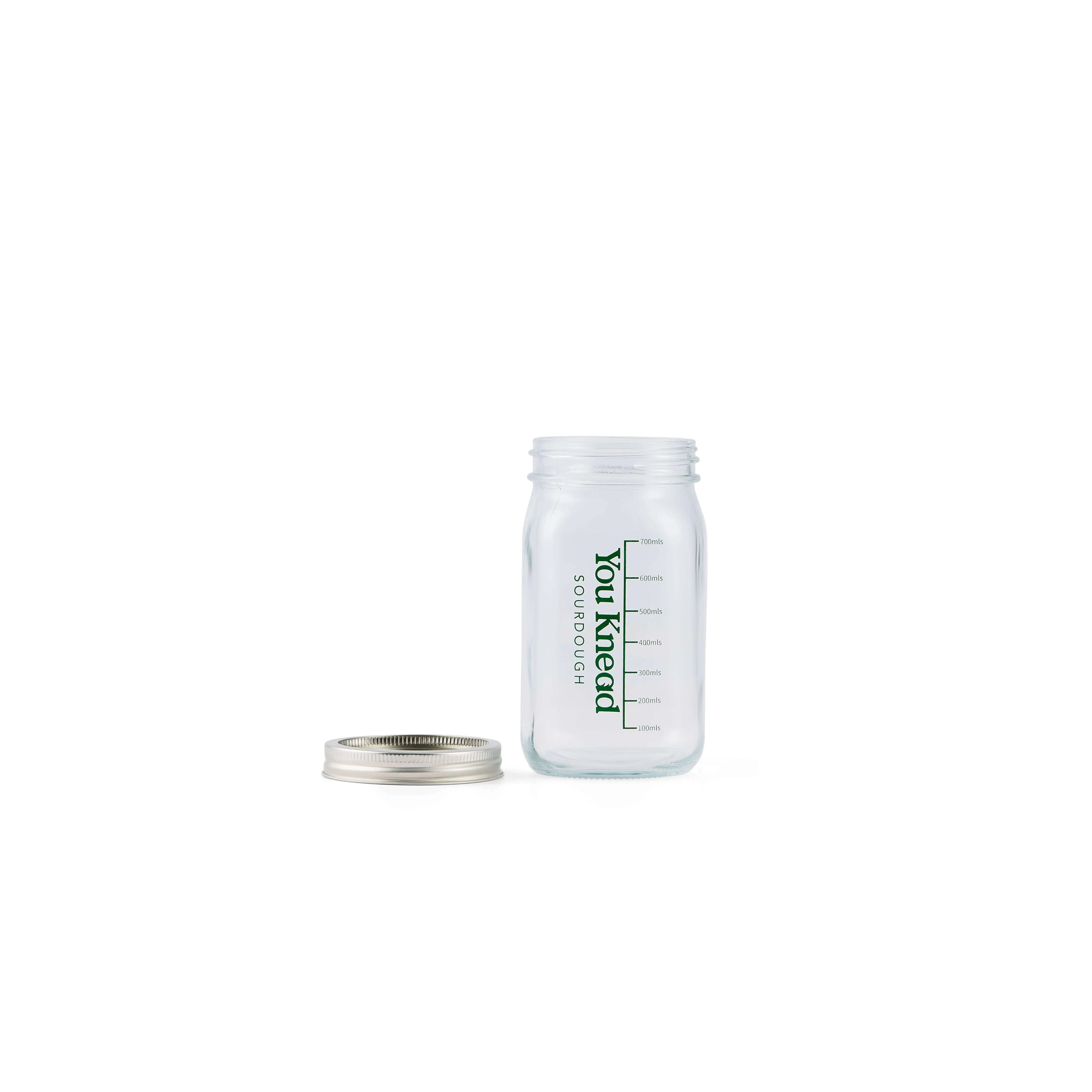 Introducing the Sourdough Starter Jar: Your Baking Buddy for Perfect Loaves! Ready to dive into the wonderful world of sourdough? Our Sourdough Starter Jar is here to make your bread-baking journey a whole lot easier and more fun. This jar, with its 950ml capacity, is just the right size to nurture your starter into a bubbly, tangy superstar. This product is the jar only - dried sourdough starter flakes sold separately. Smart Lid Design Our jar features a two-part lid system: A silver plate to keep out contaminants A loose-fitting ring that allows gases to escape while still offering a light seal to protect your starter This balance ensures that your starter remains healthy without the risk of excessive gas buildup or exposure to airborne particles. Thermal Temperature Sticker Temperature plays a crucial role in keeping your sourdough starter active and bubbly. Our jar includes a handy thermal temperature sticker to help you find the ideal fermentation spot in your kitchen. Simply peel the white backing off and stick it to the side of your jar (make sure it's clean and dry). The sticker remains black if the temperature is outside the optimal range, and a coloured rectangle behind the number indicates the current temperature inside the jar. We recommend aiming for 26°C for best results. Why You'll Love It Durable & Stylish: Crafted from high-quality, food-grade glass, this jar is built to last. It looks great in your kitchen and is your starter's best friend. More Than Just Sourdough: While it's perfect for your starter, this jar is versatile enough to store everything from pickles and jams to pasta and grains. Gift-Worthy: Looking for a gift for a fellow bread lover? Our Sourdough Starter Jar is a thoughtful choice. Eco-Friendly: We're all about sustainability. Our jar is eco-friendly and reusable, making it a green choice for your kitchen. Get ready to level up your sourdough game with a jar that's got your back. Whether you're a pro or just starting out, our Sourdough Starter Jar is your secret weapon for baking those mouth-watering, crusty loaves you've been craving. So, what are you waiting for? Bring home the You Knead Sourdough Starter Jar and watch your loaves rise to the occasion. Happy baking! Care Instructions Hand wash lid only. Dishwasher may cause rusting. Keeping your jar clean helps maintain a healthy starter and prevents unwanted mould or bacterial growth. Here are some key cleaning tips: Before First Use: Place glass jar in dishwasher and thoroughly dry before sticking on thermal temperature sticker. Ensure you are using a clean jar to prevent any contamination with your starter. Routine Cleaning : Wipe down the inside of the jar with a clean, dry cloth after each feeding to remove any dried starter residue. Deep Cleaning : Every few weeks, transfer your starter to a temporary container or second jar and wash your jar with warm, soapy water. Rinse thoroughly and allow it to dry completely before refilling. Avoid Harsh Chemicals : Stick to mild dish soap and avoid bleach or harsh cleaners that could leave residues affecting your starter. Check out our Starter Jar Blog for more info. Shipping Shipping is calculated automatically at checkout based on your delivery postcode and the items in your cart. To view shipping costs for your country, visit our shipping policy here . Please double-check your shipping address before placing your order. Once shipped, we cannot accept responsibility for incorrect address details. Returned parcels can be refunded or re-posted.