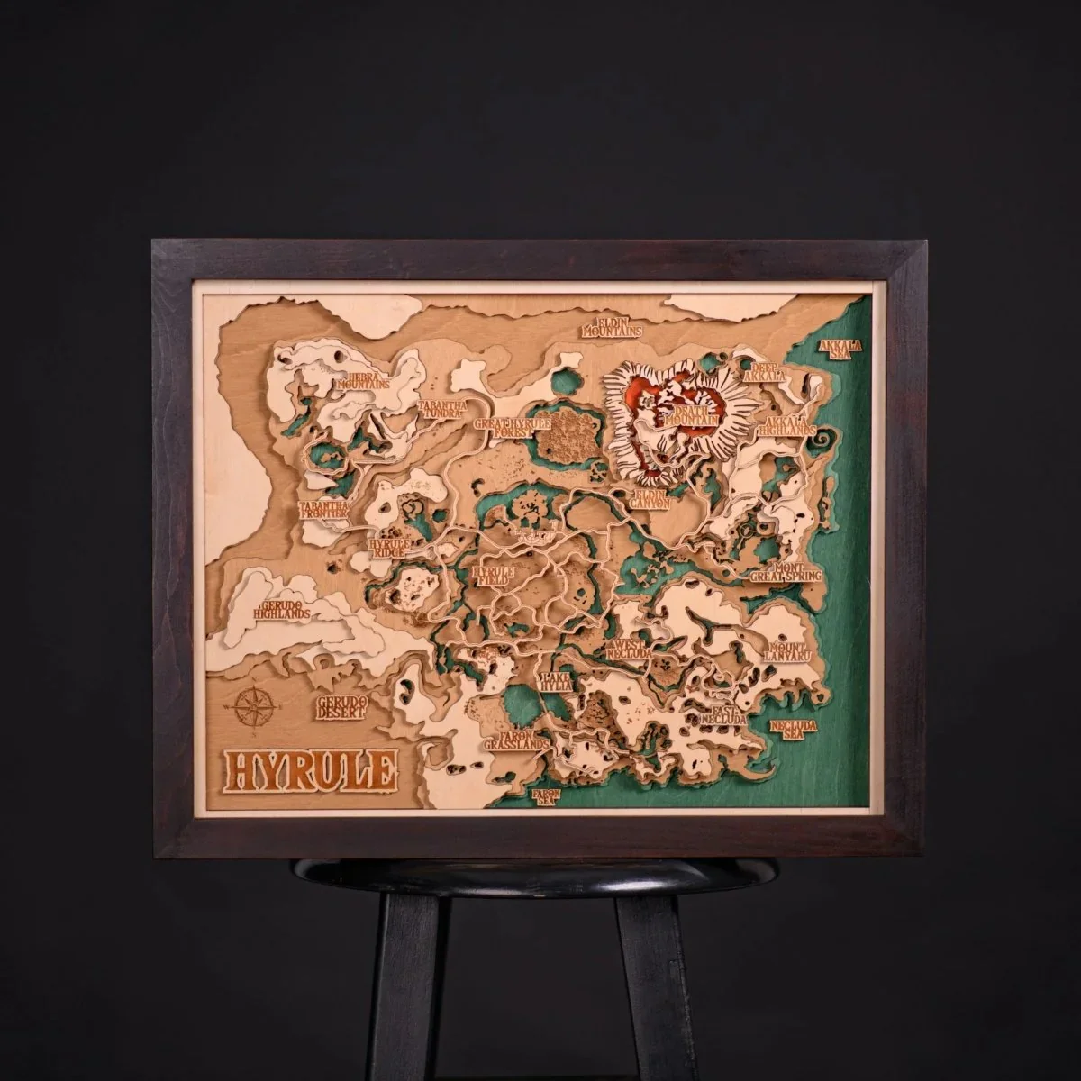 Our 3D wood map of The Legend Of Zelda - Hyrule Kingdom • Unique design • Free International Express shipping • Handmade of natural plywood • The frame and plexiglass are included and ready to hang MAP FEATURES • For all Zelda fans . • This map is made of natural wood by hand and laser cutting . • The map is very detailed , there you can find the places of all the adventures of our favorite characters. • You can personalize the back of the map with an inscription simply by entering the desired phrase in the order note. • You will receive a frame and plexiglass along with the map. So you can easily hang it in your home, and it will please you and your family for many years. COLORING We want you to have the best options for your interior, so we decided to create 2 color options: Multicolored Natural SIZES M - 25x20cm 10"x 8" L - 50x40cm 20"x 16" XL - 75x60cm 30"x 24" *L and XL sizes could be more detailed and include more layers. QUESTIONS❓ Please write to us with any questions and get an answer within 24 hours.