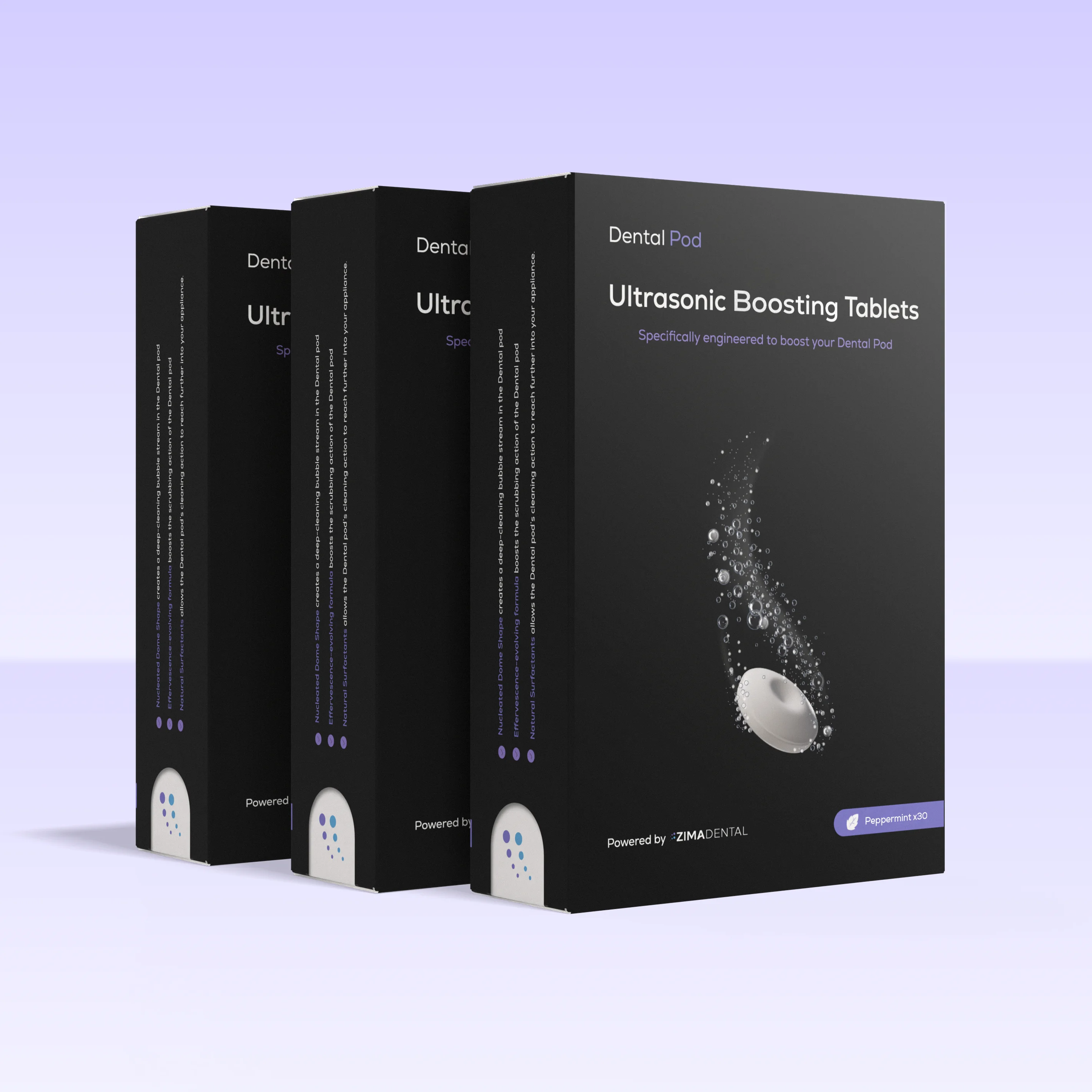 Patented shape, size and formula to optimise ultrasonic cleaning Unique formula engineered to safely and effectively help remove stubborn bacteria Fresh mint scent to neutralise odours and freshen the taste of your oral appliance Unlike traditional tablets, no harmful chemicals such as SLS, sodium benzoate and persulfates While the Dental Pod acts as the superpowered toothbrush, the cleaning tablets act as the toothpaste. Using patented technology to amplify ultrasonic cleaning and help remove stubborn stains and bacteria, these tablets are the perfect partner for your Dental Pod.